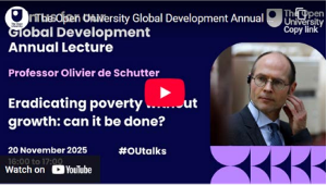 On 20 November, the OU Global Development Annual Lecture was co‑hosted by CSGD, the IKD Group at the Faculty of Arts and Social Sciences, and the OU’s Open Societal Challenges. Professor Olivier De Schutter, United Nations Special Rapporteur on Extreme Poverty and Human Rights, challenged the premise that economic growth alone can end poverty. He argued that the quest for growth can be counterproductive: it drives environmental harm, creates “burnout economies”, and leads to policies that worsen the very problems of social exclusion and inequality it seeks to solve.