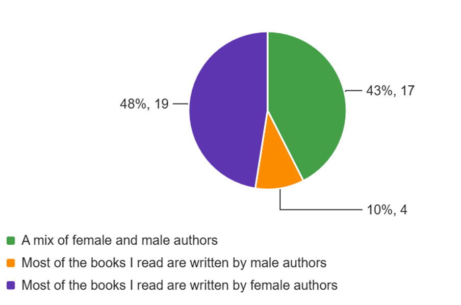 The survey is still live, and as more students participate, this picture may shift of course. But at the moment, the finding that almost half the survey respondents read books by authors of the same sex, indicates that the impact of different fictional worlds (irrespective of genre) may be worthy of future research.
